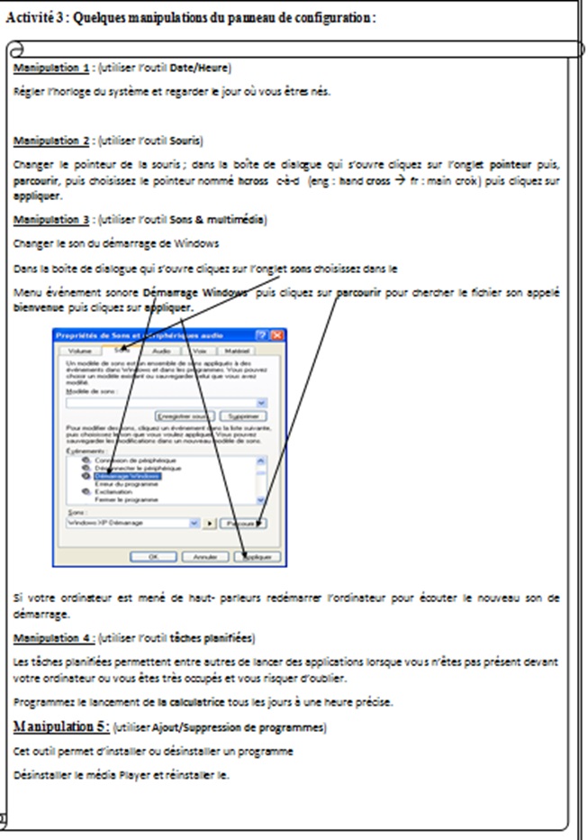 v Donner la différence entre une fenêtre et un boite de dialogue: ………………………………………………………………………………………………………